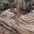 自然地形のような見事な竪堀の横に落ち葉等で