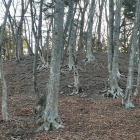 城びと先達投稿に「北見老人会道標に従えば迷うことはない」とあり、イオさんは、枳城から遠ざかっていく道に不安を覚えて道を違え、直登になった旨のレポートがあり、しんちゃんさんは、「上の方まで林道がある」と。これらの情報がないまぜになり、結局、登りでは、北見老人会の道標を見ることなく、林道の最高点から、城域に続く尾根(疎林)を西に進んで城に到達。帰りは、老人会設置の道標を見つつ反省。1枚目の写真に、山を登っていく道のガードレールが見えます。これが、しんちゃんさんの言う、林道だろうと(違うんですよ)、そこに取りつくべく、9枚目の写真の右手のミカン畑の間の道を選択。難なくこの林道に進めたので、楽勝と思って登っていきましたが、最高点に至っても、道標がでてきませんでした。素直にまっすぐ行かんといかんよ。