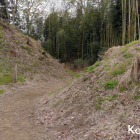 ピンクリボンに従ってまっすぐ進むと切通があり、ここから右手に登ります。