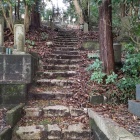登城口には奈良県平群村のマスコットキャラクター左近くんが城を守るように立っています。島左近の居城であったという説もありますが、確認できていないようです。椿井井戸登城口から登城し椿井春日神社へ下りてきました。登城路は整備されていてそれなりの山道ですが、まあまあ歩きやすくなっています。「北郭部分は平成25年4月1日より当面、見学を制限します」と書かれた案内板あり、まだ北郭へは行くことができません。北郭への道も藪になっていてわからなくなっていました。南郭の堀切、土橋、石積等を観ながら散策しました。椿井城案内板の縄張り図に描かれていた石積下の竪堀は藪になっていてわかりませんでした。