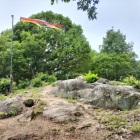 …ということで、一応、城びと(とニッポン城めぐり)の位置情報の地点には行きましたが、古城盛衰記さんでは貯水池西側の頂部を峰山城としており、私の見ていない堀切と竪堀の写真を掲載しておられます。ちえぞーさんとは同じ場所に行っているように思いますが、ちえぞーさんご自身も「イマイチ自信なし」としておられるように、私も正直なところあまり自信がありません。ただ、峰山城が芳養川流域を掌握するための城であるとすれば、芳養川を見下ろす北東側の頂部を峰山城(少なくともその一部)と考えても間違いではないのかな、ということで、疑問もありますが「行った」をポチさせていただきます。