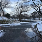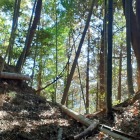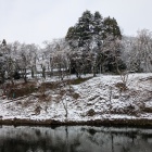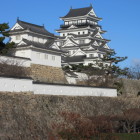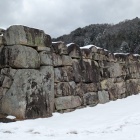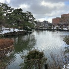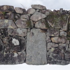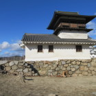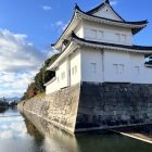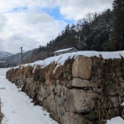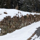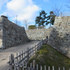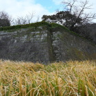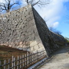 内堀と南面石垣は整備のまま奇麗に保全されています、歴史博物館館内部からと外のテラス席から堀と石垣が良く観えます、博物館の北側は大型のガラス張りで石垣鑑賞がよく出来る配慮、椅子も有り座ってゆっくり石垣鑑賞するのには持って来いの場所、のんびりと鑑賞してみたい、外のテラス席も同じく、良い場所に歴史博物館を作ってくれました、外に出て周囲、西と東、石垣増設改造の履歴が分かる石垣土塁断面部分、それぞれ開設が付いています。
