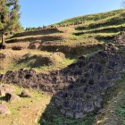 肥後国衆・和仁氏の居城で、小さな独立した丘全体が城域。まるで棚田のような、ひな壇状に無数に広がる曲輪は特筆もの。その他にも空堀、捨て曲輪、出丸などが立派に残り、きれいに草刈りされた整備状況も素晴らしい