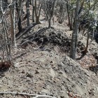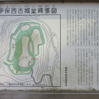 愛知県豊田市にある城びとには未登録の城址です。この付近には伊保西古城の他に伊保東古城、伊保城、伊保古城と似たような名前の城址があります。今回は伊保西古城へ行って来ました。標高119mの丘の上に築かれた城で広さ1800㎡の主郭の他に虎口、腰曲輪などを遺っています。ただ腰曲輪は竹林となっていて散策はしていません。主郭には石碑と説明板があります。説明板の縄張り図で堀切と書かれた場所に行ってみました。ここも、竹林となっていて倒竹などもあり散策に少し難渋しましたが、堀の形状は残っていました。堀切というより横堀という感じです。主郭の南側に濠を伴った土塁のような地形もありました。15世紀後半から16世紀前半にかけて、この一帯を治めていた三宅氏の居城だったと伝わります。その後、三宅氏は松平氏に追われて広瀬へ移り、さらにその後は織田氏の領地となりました。織田信長の家臣佐久間信盛が城主であった記録もあるようです。