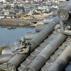 2週間ぶりの訪問だったが、修復工事は確実に進んでいたようで、天守最上段部分がなくなっていた