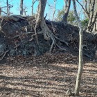 散策路から少し外れた南西部の空堀周辺を歩いていると石積みに見える場所がありました。手元にある資料とネットの情報を見る限り石積みがあったとの情報はないので自然地形か後世のものか判断できませんが、添付しておきました。