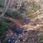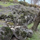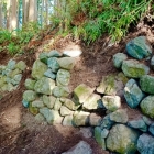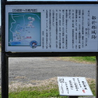 城の北側、尾根には堀切が2カ所あり搦手からの敵に備えています。最初の堀切は首洗い井戸がある駐車場になっています。北尾根には遊歩道が整備されていて歩いて行くと土橋と堀切と思われる地形を見ることができました。さらに進んで行くと「からめての戦い」の説明板があり、門があったのか石垣を少し見ることができます。