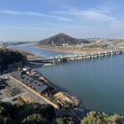 下城して西側の豊岡小学校西を流れる一雲済川西土手より社山城西部を眺める、磐田台地北端の隘路北の一本高い木が目立つ所が本曲輪です、一雲済川は信玄が遠州を西侵攻し磐田台地西側を北上して社山城を過ぎて在陣した合代嶋を流れて居り社山城から北へ約1km程で合代島です、現在豊岡中学校辺りが字名で「合代島」と成っています。グーグルマップをよくよく眺めても史跡マークで「合代島」は検出されません。