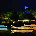 内堀に映える白漆喰仕上げ黒漆塗下見板の大天守