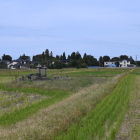 砂利道の突き当たりが馬場跡で駐車場になっています。
