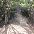 細い道を進むと主郭への土橋があり、両側に空堀がありました。